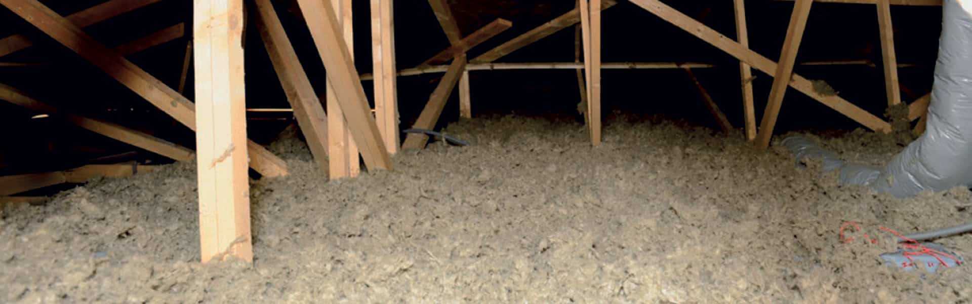 La laine de roche est utilisée en projection sous forme de flocons : technique d’isolation par soufflage réalisée à l’aide d’un outil pneumatique.